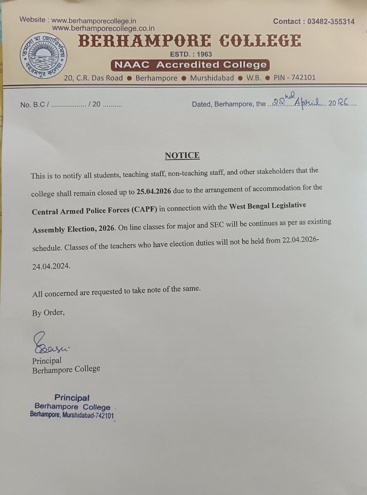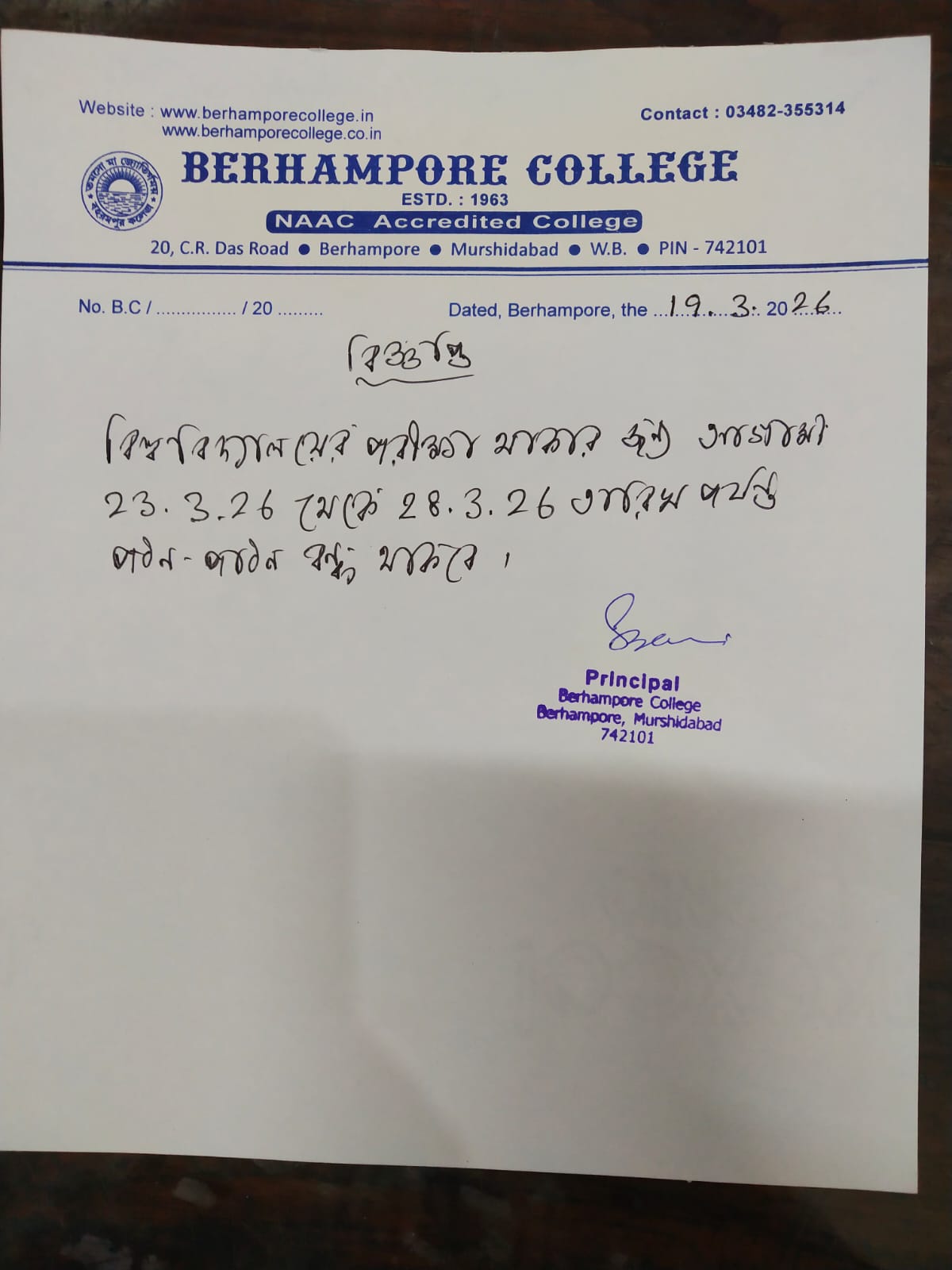WELCOME TO BERHAMPORE COLLEGE