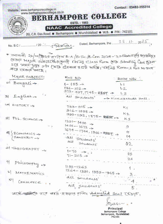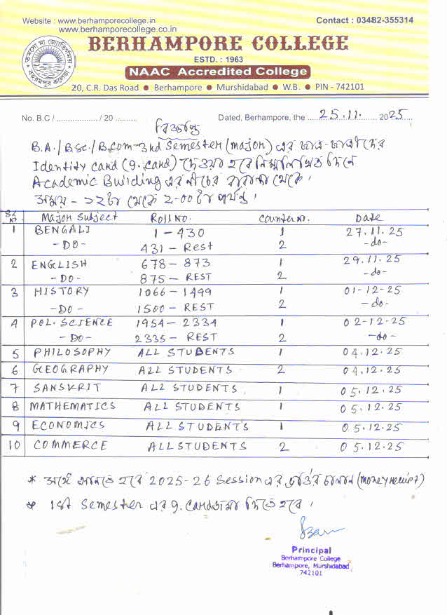 | 1 | 25 Nov 2025 | New 3rd Semester(2025-26) I. Card distribution Notice | Download |