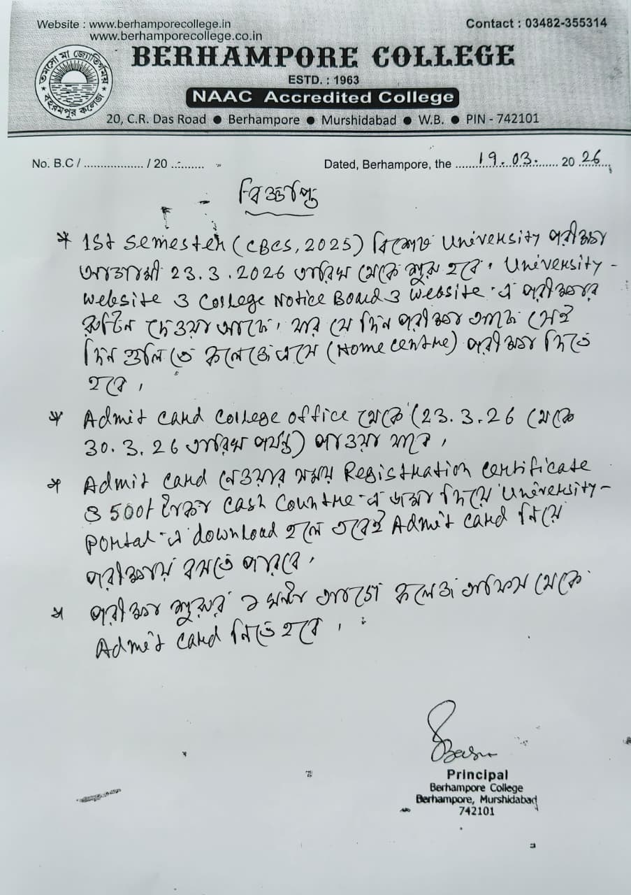 | 8 | 07 Mar 2026 | 1st Sem Admit Card Distribution Notice | Download |
