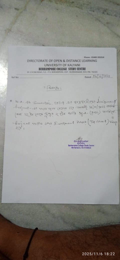 Nestled at the heart of Murshidabad District, Berhampore College, has a proud history of inspiring and helping students since its foundation in 1963. Initially started as Raja Krishnath College of Commerce, the college was renamed in 1975 owing to the introduction of Arts Stream in collaboration with Calcutta University and the Government of West Bengal. Today, Berhampore College includes courses in Humanities, Commerce and Science Streams offering undergraduate degrees in Bengali, English, Philosophy, History, Geography, Film Studies, Commerce, Economics, Sanskrit, Mathematics, and Statistics to accommodate the needs of its varied and diverse student demographic. Affiliated with UGC under 2f and 12B, this NAAC accredited college has, in the recent years, under the able leadership of its esteemed TIC, Dr. Santanu Bhaduri, prioritized its commitment to education through innovative classroom learning.